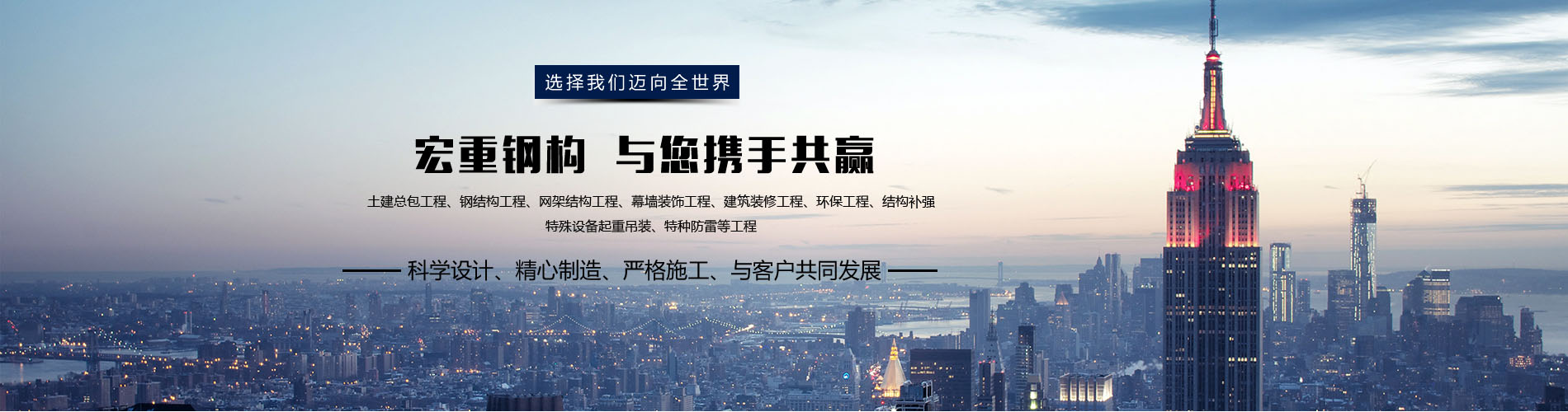 廣東宏重鋼構(gòu)工程有限公司主要從事土建總包工程、鋼結(jié)構(gòu)工程、網(wǎng)架裝飾工程、建筑裝修工程、環(huán)保工程、結(jié)構(gòu)補(bǔ)強(qiáng)、特殊設(shè)備起重吊裝、特種防雷等工程。集設(shè)計(jì)、制造、安裝、銷售一條龍的配套企業(yè),擁有鋼結(jié)構(gòu)生產(chǎn)一級(jí)生產(chǎn)資質(zhì)、鋼結(jié)構(gòu)工程專業(yè)承包二級(jí)資質(zhì)、建筑幕墻工程專業(yè)承包二級(jí)資質(zhì)、建筑裝修承包工程二級(jí)資質(zhì)、特種工程專業(yè)承包資質(zhì)、環(huán)保工程專業(yè)承包二級(jí)資質(zhì).....更多